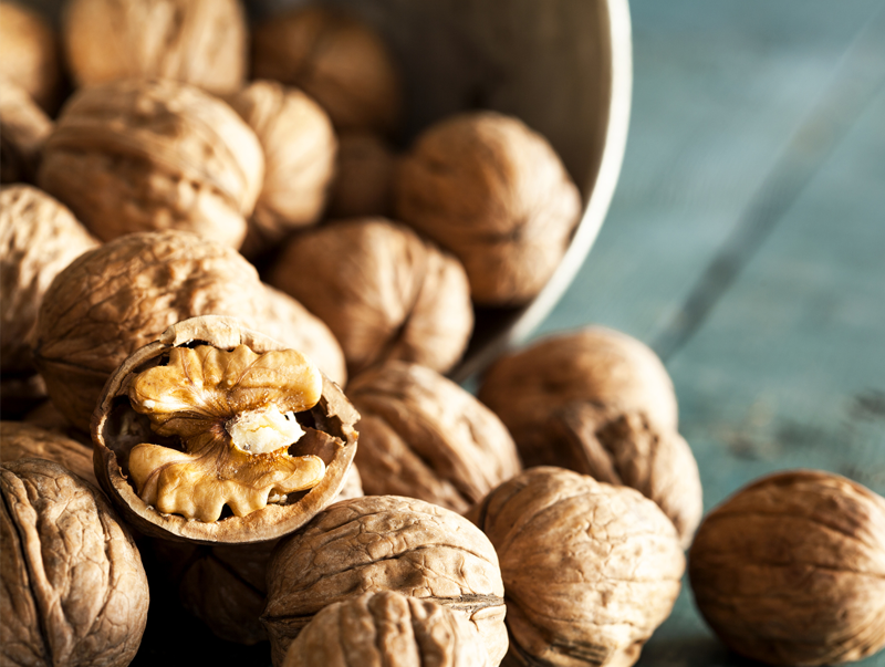 A walnut is used for food after being processed while green for pickled walnuts or after full ripening for its nutmeat. Walnut meats are available in two forms; in their shells or shelled. The meats may be whole, halved, or in smaller portions due to processing. Walnuts are often candied, and may be used as an ingredient in other foodstuffs. All walnuts can be eaten on their own (raw, toasted or pickled) or as part of a mix such as muesli, or as an ingredient of a dish.